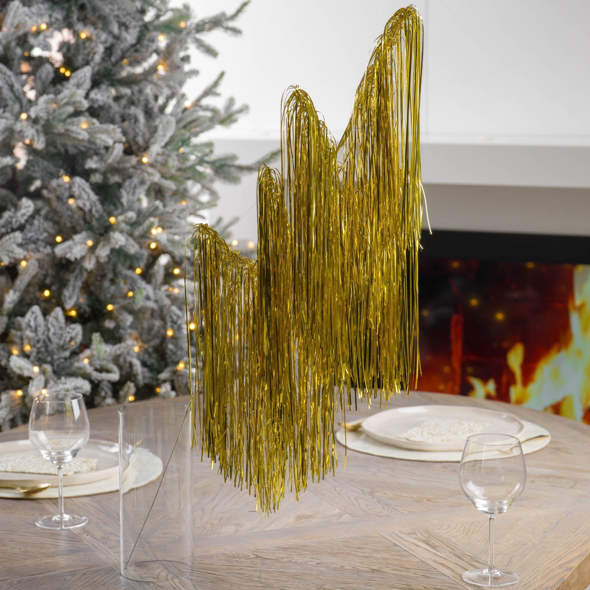 Infuse your seasonal décor with the rich glow of this gold tinsel spray.
