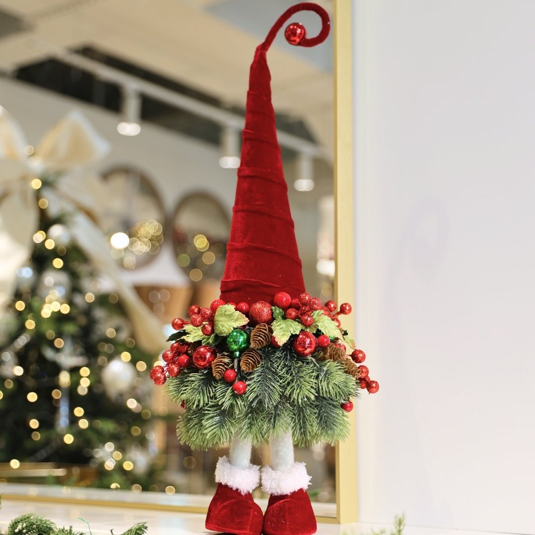 Full of playful spirit, this cheerful elf brings holiday magic wherever it stands.Accented with holly leaves and bright berries, it’s made to spread joy and color.