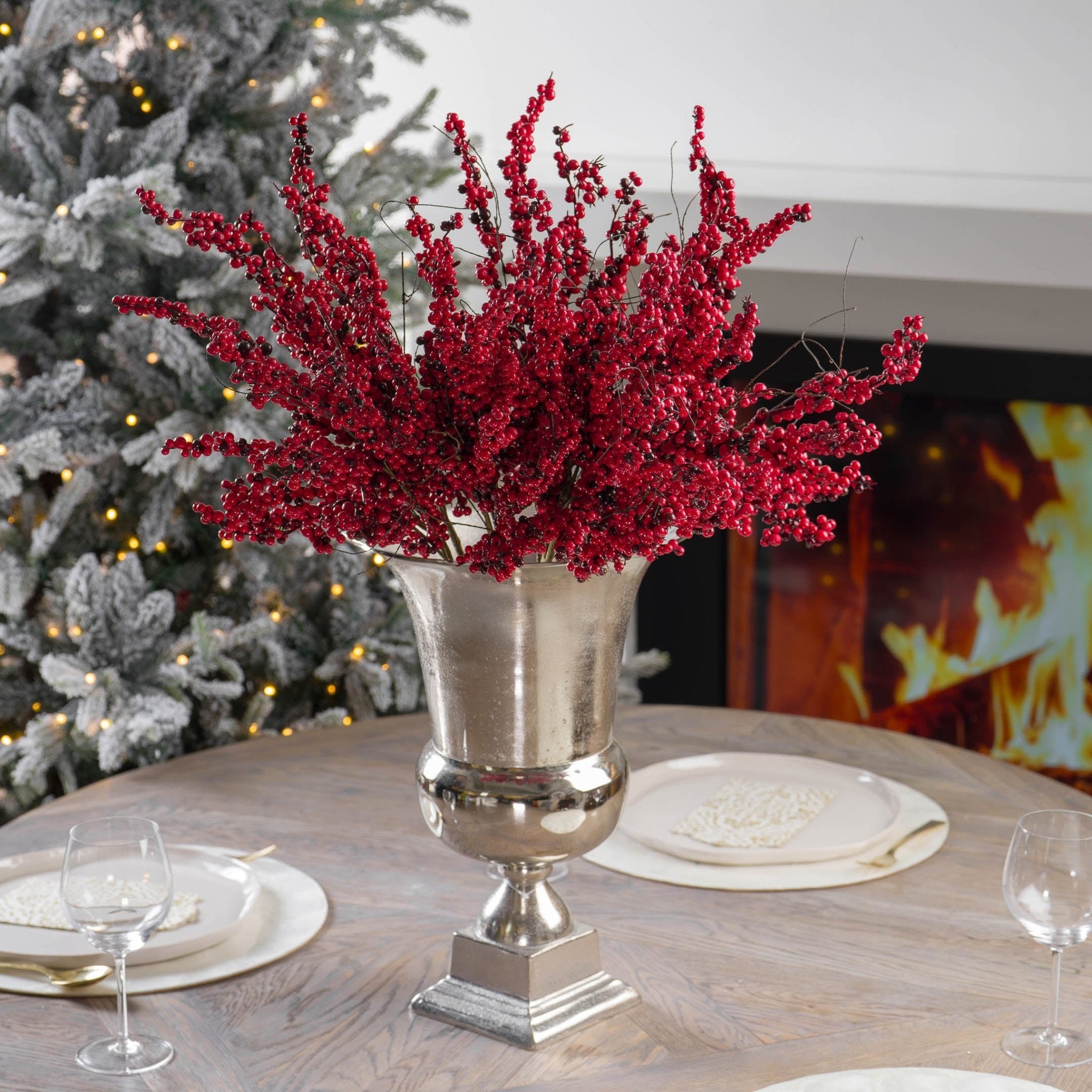 Featuring clusters of vivid red berries, it adds a cheerful pop of color and natural charm to wreaths, garlands, and floral arrangements.
