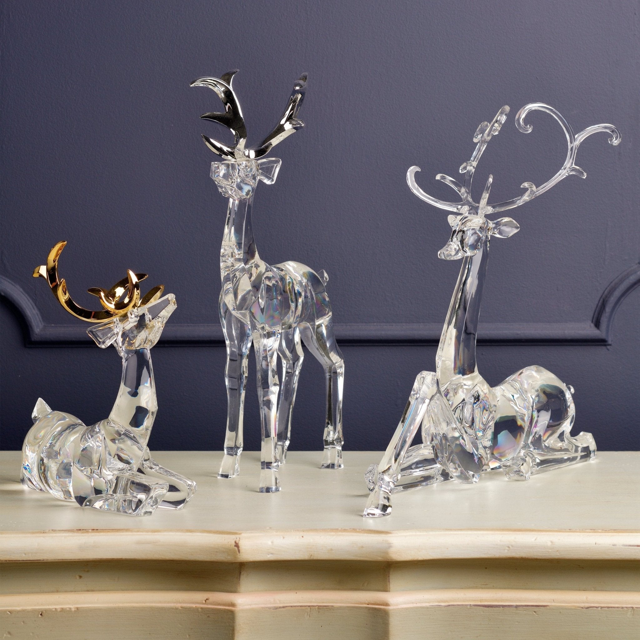 Elevate your holiday decor with this Acrylic Sitting Reindeer. Its charming details, like the gold metallic horn, bring a touch of sophistication to your holiday decor. Made of durable acrylic, this reindeer will last for many Christmases to come.