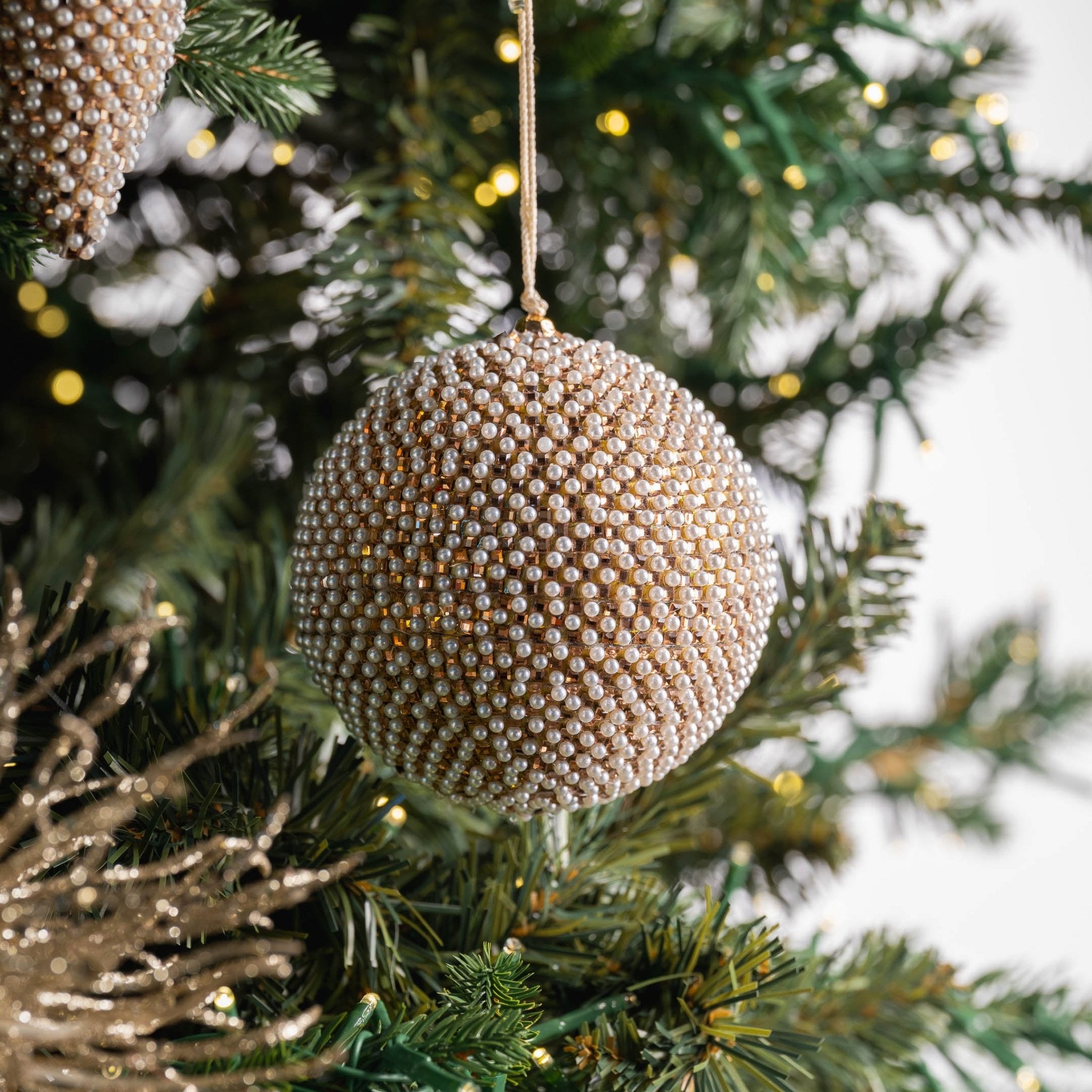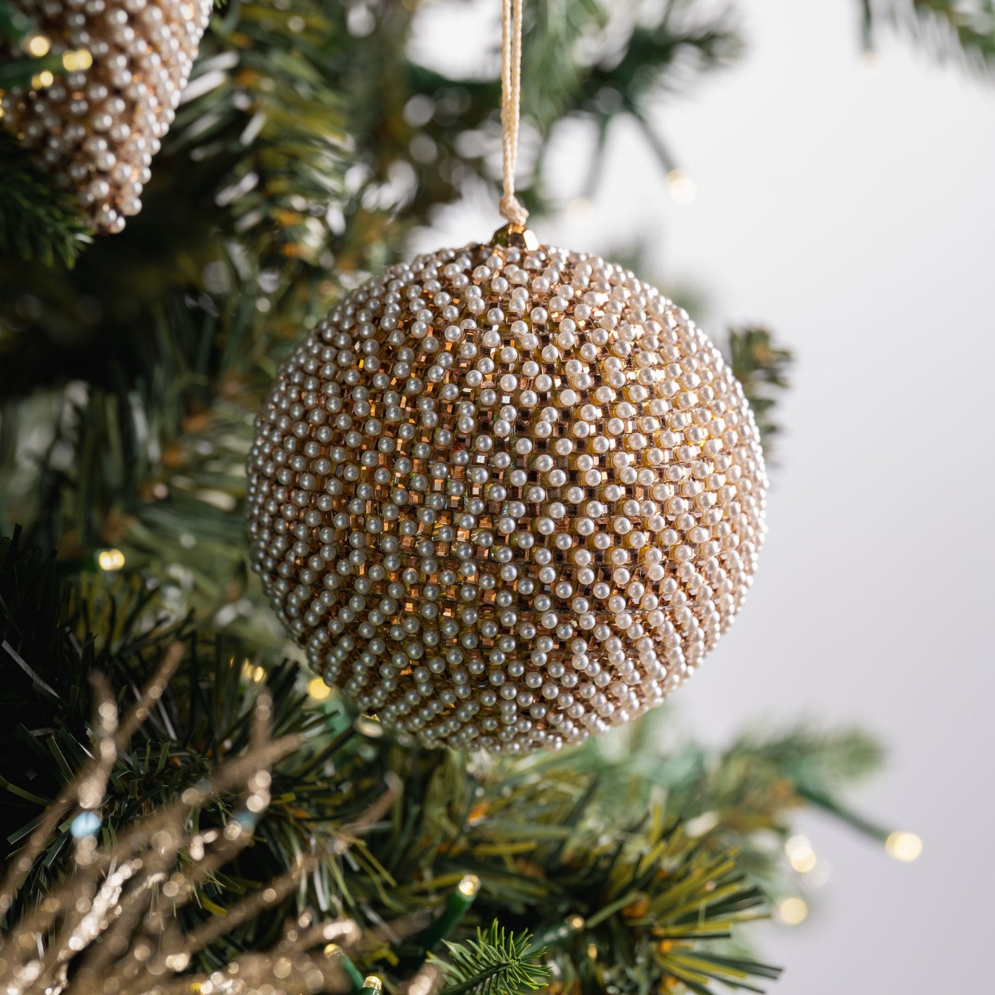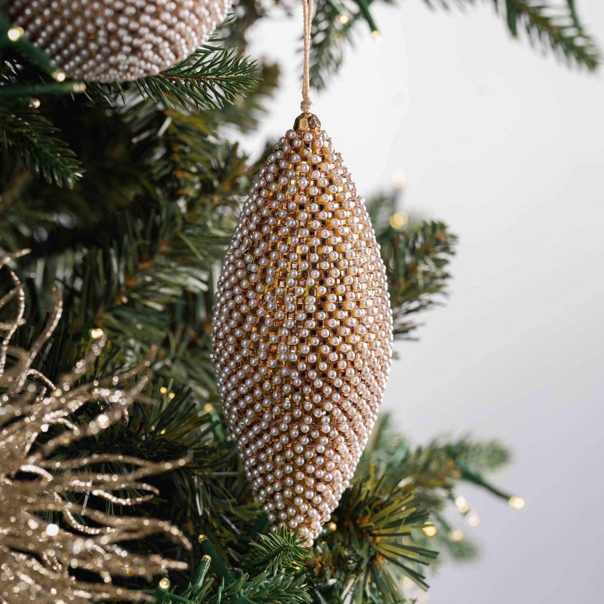 Elevate your holiday décor with the elegant shimmer of this crystal and pearl drop.