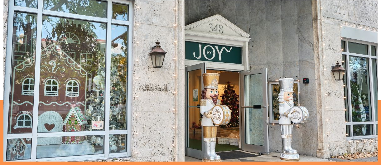 Experience the magic at Joy By’s Coral Gables pop-up—twinkling lights, Christmas music, festive decor, and decorating classes that bring the season to life.